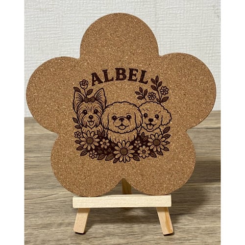 うちの子シリーズ pot matは、愛犬をレーザー刻印した鍋しきです。